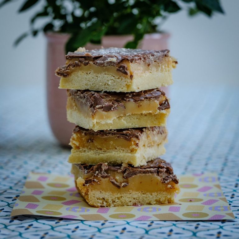 A rich, buttery hand kneaded shortbread for a perfect, melt-in-your-mouth texture. Topped with a layer of creamy, dark golden caramel that's slow-cooked to perfection! A layer of rich chocolate brings all three layers together for a truly comforting treat. Every slice is a testament to honest, delicious baking.