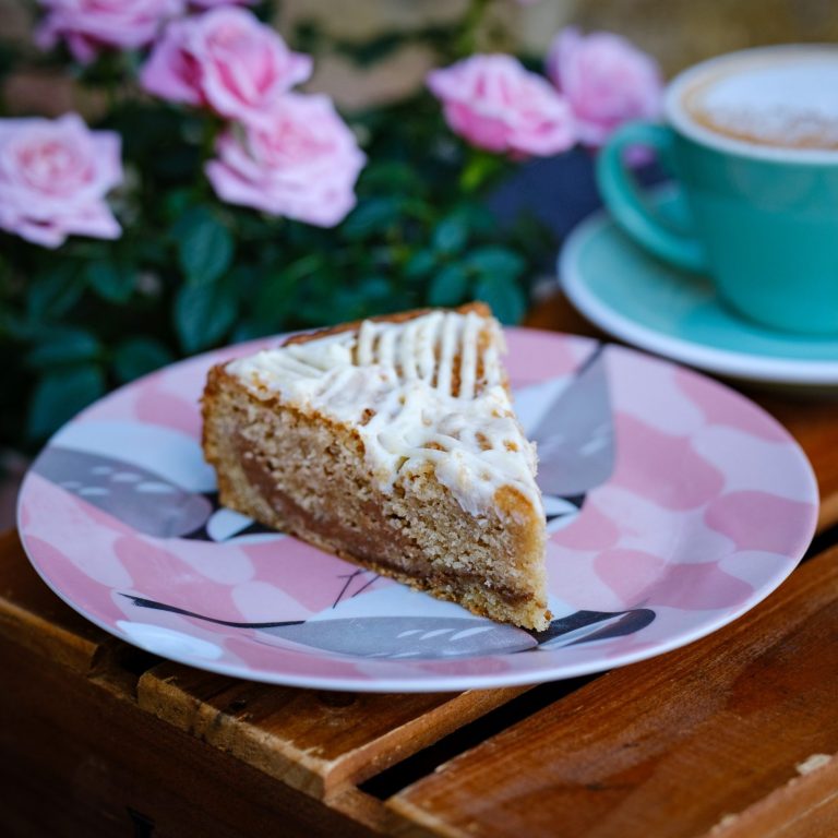 A true masterpiece of texture and flavour, one I am exceptionally proud of! It has a moist and flavourful sponge that's unlike anything you've ever tasted. It is doused in organic honey, soaking in a natural sweetness that permeates every single crumb. Topped with a generous scattering of roasted flaked almonds, adding a beautiful nutty aroma and a delicate crunch. Every single mouthful of this cake will literally melt in your mouth!